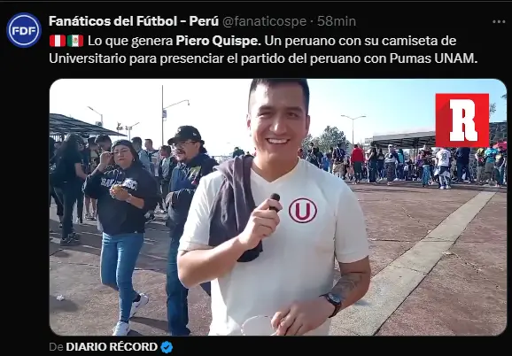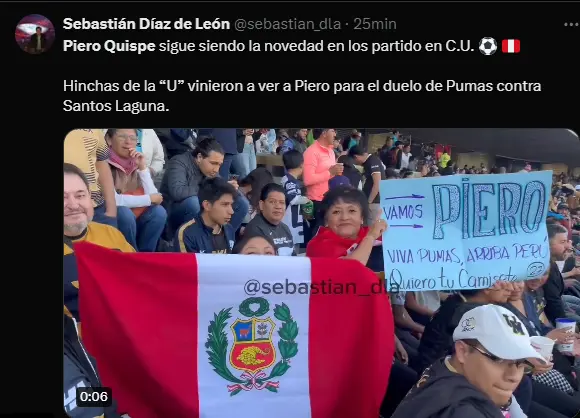 La llegada de Piero Quispe a Pumas ha provocado que las miradas de Perú, pero sobretodo de los aficionados del Universitario de Deportes que desde que se anunció el fichaje del ahora 27 de Universidad Nacional, han estado muy atentos a cada paso que da, pero no solo de forma digital, desde los últimos partidos en CU se ven a hinchas de su equipo natal mezclados con los auriazules, bien enfundados con su playera que de forma curiosa, allá ellos son los cremas.