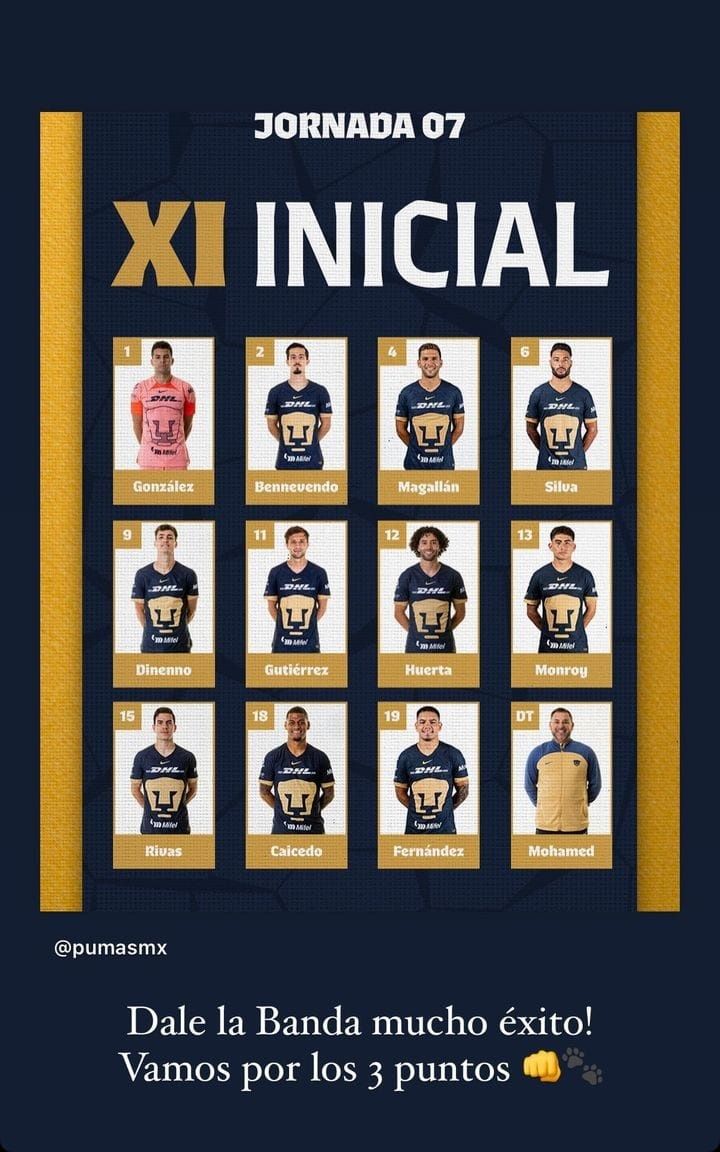 Sin embargo, algo que es común de ver es que Pumas en su Instagram anuncie el 11 inicial, fotografía que es compartida por los elementos titulares, sin embargo, ayer el Palermo compartió al cuadro titular de Mohamed con un mensaje de aliento, algo que es muy poco común ya que los que se quedan en el banquillo no suelen dar este tipo de detalles, pero Ortiz entiende su lugar en el equipo y lo grita a los 4 vientos.