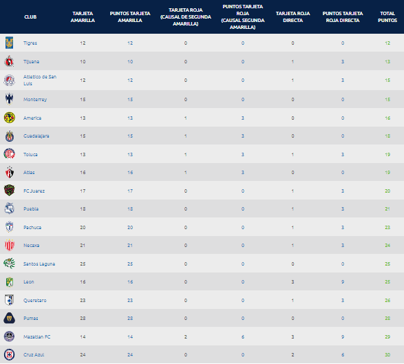 Luego de que ya se ha ido casi la mitad de la competencia, Pumas tiene un problema en el tema del fair play, que es una de las formas en las que la liga puede resolver el tema de algún empate al final del torneo para definir a los calificados a la liguilla, así que no es un tema menor.