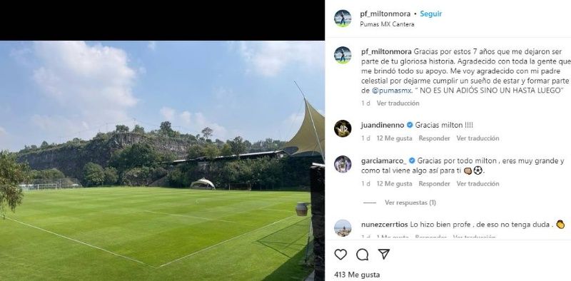 “Gracias por estos 7 años que me dejaron ser parte de tu gloriosa historia. Agradecido con toda la gente que me brindó todo su apoyo. Me voy agradecido con mi padre celestial por dejarme cumplir un sueño de estar y formar parte de Pumas. “NO ES UN ADIÓS SINO UN HASTA LUEGO”, escribió en su Instagram.