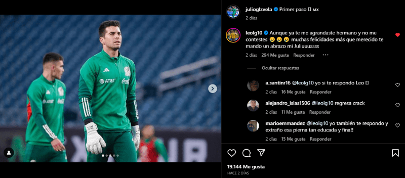 Sin embargo, hay quien ahora lo tacha de agrandado, ni más ni menos que Leo López, quien dejó un buen sabor de boca en Pumas y ahora juega en el Strongest de Bolivia y que ha comentado la fotografía en Instagram de Julio donde posa con el uniforme nacional, recordándole que aunque ya se agrandó y no le conteste, le desea lo mejor en su camino, sin embargo, Julio hizo caso omiso a su mensaje, sin embargo, los que si le respondieron fueron aficionados auriazules y él correspondió con likes para todos: