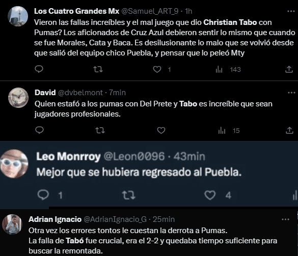 El falló de Tabó llega en un momento en el que la afición se ha cansado de estos fallos inverosímiles, por ello no se lo han perdonado en redes sociales y le han criticado de forma muy fuerte su error, pero además, no solo ha sido la afición auriazul, incluso los del Cruz Azul han aparecido para burlarse de que nos mandaron a su futbolista más tronco.