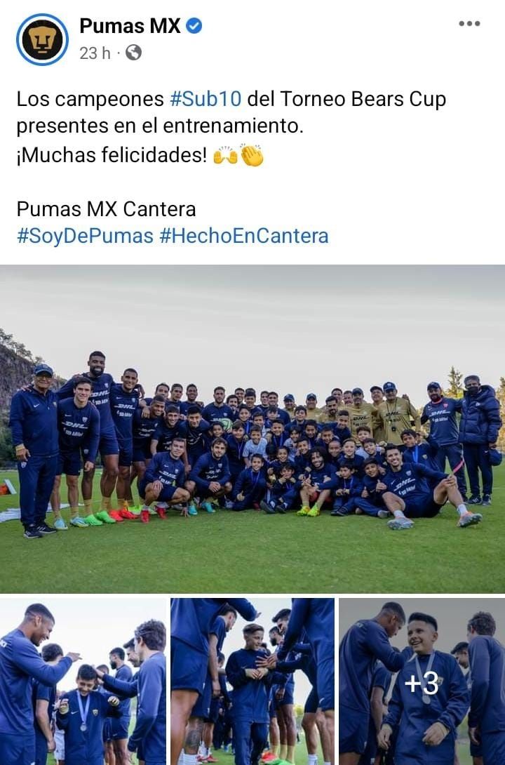 A través de redes sociales Pumas lanzó la información de la obtención de una copa en la categoría sub 10 en favor del equipo universitario destacando a las fuerzas básicas universitarias como una de las mejores del país algo que no se consigue a billetazos, sino con trabajo y sacrificio.