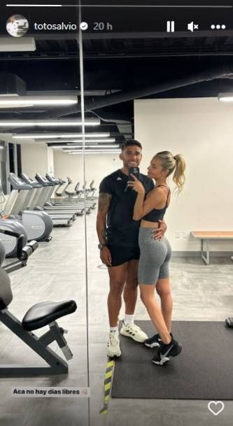 Estamos hablando de Eduardo Salvio, quien presumió en sus redes sociales una foto con su pareja Sol Rinaldi después de una sesión de entrenamiento. El Toto subió la imagen acompañada de la frase ‘Acá no hay días libres’.